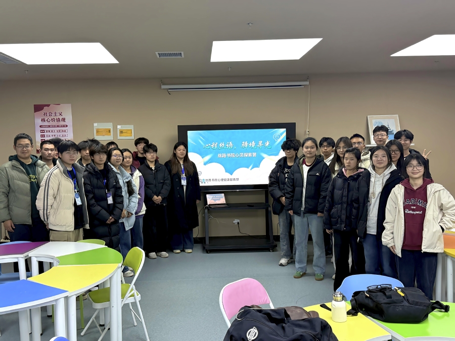 为了帮助同学们在学期末调适心理状态、提升情绪管理能力,促进积极心态与团队合作能力,丝路书院心理健康服务部于12月10日17:20-18:30在科创楼大学生心理活动中心9813举办了“心程丝语,驿境寻光”心灵探索营主题活动,为同学们营造了一个安全温馨的心理驿站。