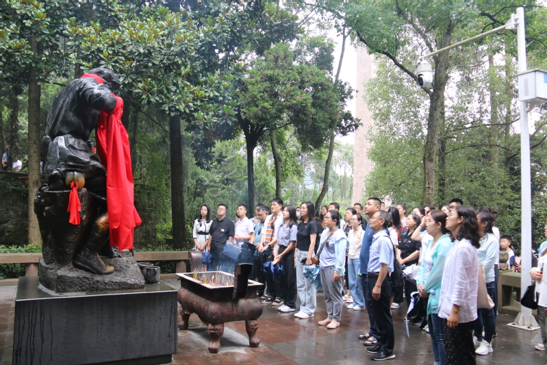 登上红军山烈士陵园,站在红军女战士雕塑前,聆听红军卫生员龙思泉的故事。他的故事感人至深,让人纷纷落泪,大家都为他以生命践行“全心全意为人民服务”的精神所打动,为他为国为民勇敢献身的无畏精神所触动,也为军民鱼水情深的真挚感情所感动。在烈士纪念碑下面,全体党员面朝红军烈士纪念碑举起右拳,怀着无比崇敬的心情,献花篮,重温入党誓词,肃立默哀,向为夺取革命胜利英勇献身的革命先烈们致敬。