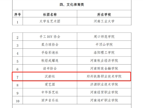 根据省委教育工委、省教育厅《关于开展2023年全省高校“十佳学生社团”评选的通知》(教思政函〔2023〕387号)要求,经学校推荐、专家评审等环节,评选出了六类十佳学生社团共60支。其中beat365汉韵社入选全省高校文化体育类“十佳学生社团”。