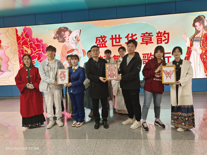汉韵社同学们给主办方郑州地铁带去了自己精心准备的剪纸作品,会展中心站地铁站康家望站长对同学们表示由衷的感谢,并表示希望在后期优秀传统文化传承方面共建合作。