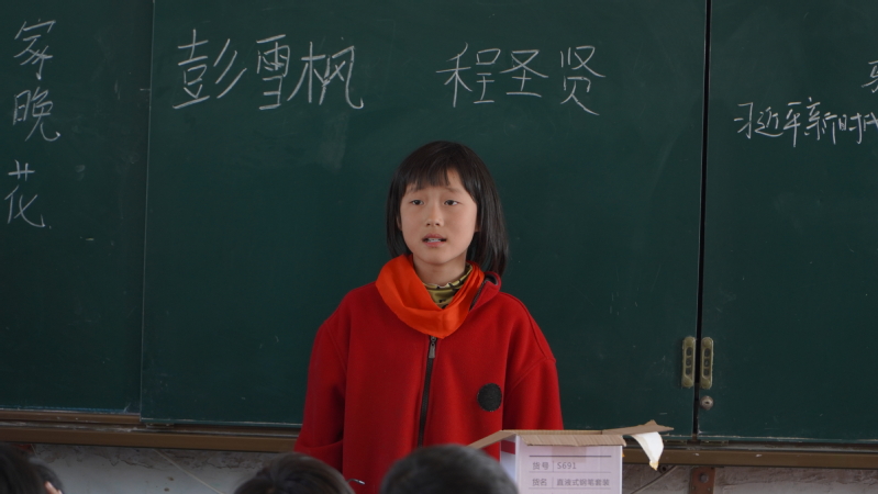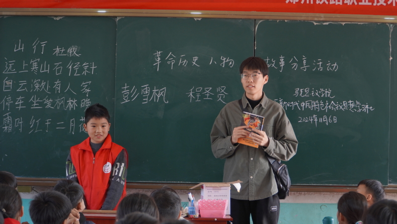 尹航老师以“七一勋章”获得者张桂梅校长的故事开启本次分享。给孩子们讲述了张桂梅校长的“一切为了孩子”的无私故事,勉励同学们努力学习,走出乡村。接着由社团负责人讲述自己寻找的商丘本土的革命故事,并随机邀请部分同学朗读红色故事读本的相关片段,对于表现优异的同学,赠送了学习用品。每位讲述人在分享的过程中积极地和孩子们互动,加深了孩子们对革命人物的记忆。
