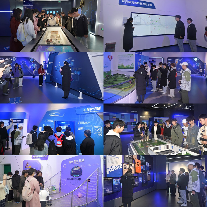 网络安全科技馆设置个人安全、政企安全、社会安全、综合竞技四个主展区,共200余个展项和1700多件展品。在讲解员的带领下,同学们通过听讲解,深入了解网络密码与安全、网络攻击和防御、网络浏览器的技术与发展等网络知识,学到了常用的网络安全技术和抵御安全风险技巧;通过互动体验、实物演示等方式,亲身感受了恶意手机充电桩、NFC隐私泄露、网络新型诈骗、智能家居安全隐患、红外针孔偷拍等生活中常见的网络安全问题。参观过程中,同学们还针对“信息茧房的利弊”展开了讨论。