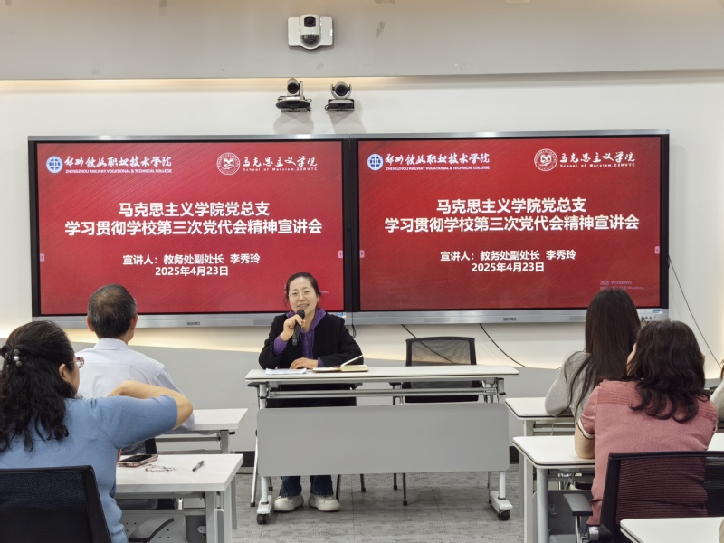 随后,马院党总支书记胡宪刚总结指出,学校第三次党代会是在学校发展的关键时期召开的一次重要会议,为学校思政教育工作的未来发展指明了方向、明确了目标。马院教师要继续发扬学校“家国情、铁路魂、工匠心、复兴梦”核心文化理念,用心用情为学生讲好立德树人的“信仰大课”和“人生大课”。
