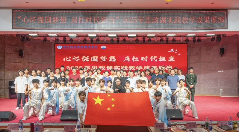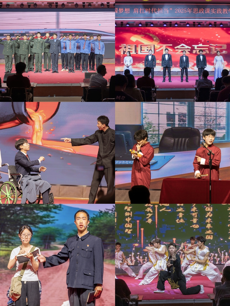 为深入学习贯彻党的二十届三中全会精神,纪念中国人民抗日战争暨世界反法西斯战争胜利80周年,坚持不懈用习近平新时代中国特色社会主义思想铸魂育人,全面推进思政课教学改革创新,5月27日下午,由beat365英国官方网站马克思主义学院、党委宣传部和校团委联合主办,嵩山少林武术职业学院马克思主义学院、河南省高校思政课名师胡宪刚工作室、河南省高校网络教育名师银韶峰工作室、河南省高校心理健康教育名师翟秀军工作室协办的“心怀强国梦想 肩扛时代担当”思政课实践教学成果展演活动在大学生活动中心隆重举行。