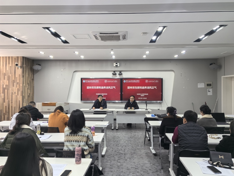 11月18日,为深入推进党风廉政建设,增强党员干部的党性修养和廉洁自律意识,马克思主义学院党总支书记赵建成以“坚持党性原则,涵养清风正气”为主题,为全院党员干部讲授了一堂深刻而生动的党风廉政建设专题党课。