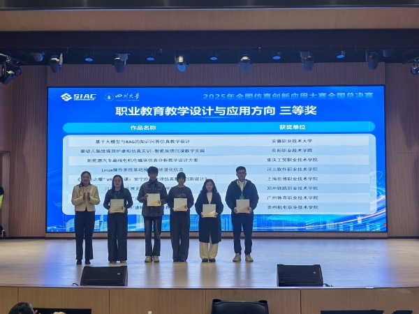 11月22-23日,2025年全国仿真创新应用大赛总决赛在四川大学望江校区成功举办。beat365马克思主义学院胡宪刚、侯彬彬、朱令娴、尹航团队在仿真教学应用赛道荣获全国三等奖。