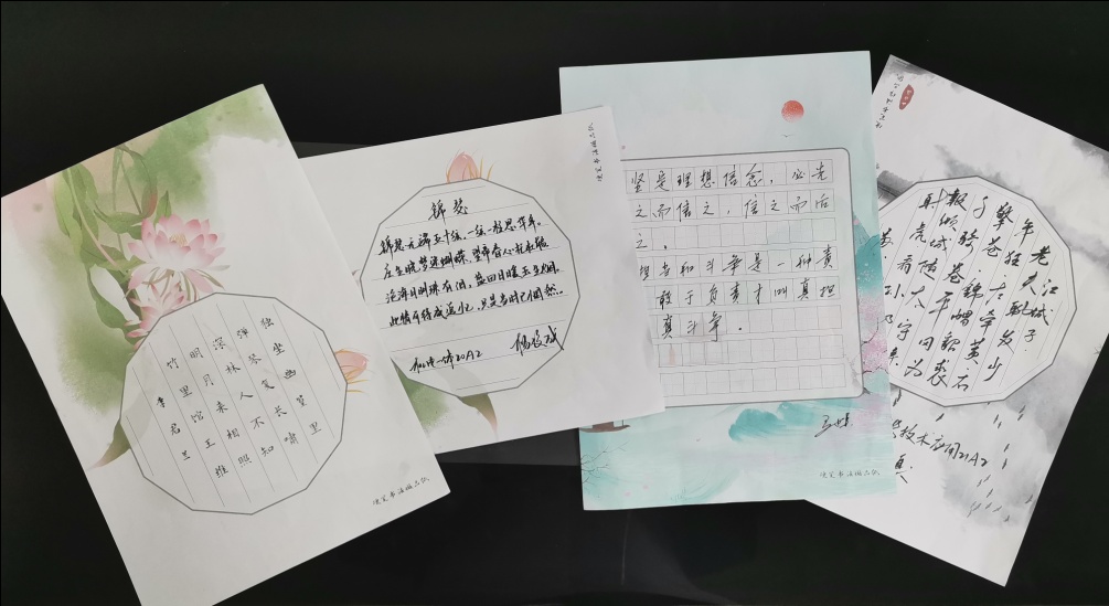 活动现场,数十名师生充分酝酿,笔走龙蛇,纷纷施展出自家“绝技”;完成作品后,大家互相品鉴,愉快切磋,多幅优秀书法作品更是受到了大家的一致好评。