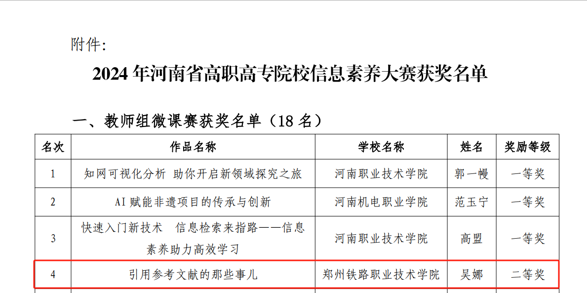 近日,由河南省高等学校图书情报工作委员会高职高专分委会主办、河南机电职业学院承办的2024年河南省高职高专院校信息素养大赛已圆满落下帷幕,beat365喜获佳绩。