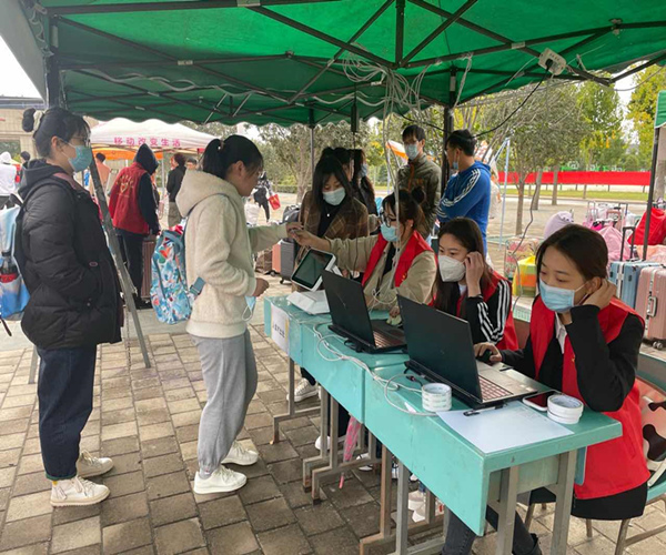 因疫情防控,家长不能陪同入校。“志愿红”始终坚守在迎新第一线,从接过手中行李,到扫码确认身份核验、提交核酸检测证明、刷脸报到、自选宿舍、引导入住、行李搬运等各个环节,处处都有“志愿红”的身影。此外,铁龙广场还设有征兵入伍咨询、新生心理健康咨询、保留学籍咨询、绿色通道咨询等等,切实让新生感受到“家”的温馨服务。