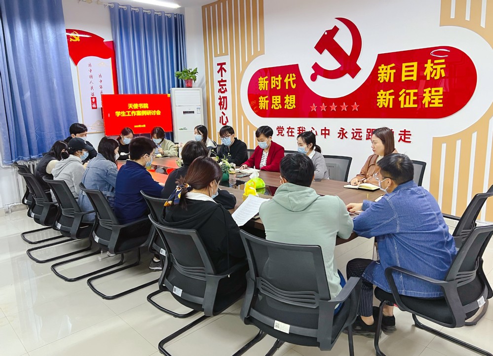 2022年10月17晚,天使书院在书院二楼会议室召开学生工作案例研讨会,党总支书记、院长王芳,党总支副书记、副院长王翡翡,副院长王小珂,书院办公室主任马鹏飞,组织员李文煜及全体专职辅导员参加会议。会议由党总支书记、院长王芳主持。