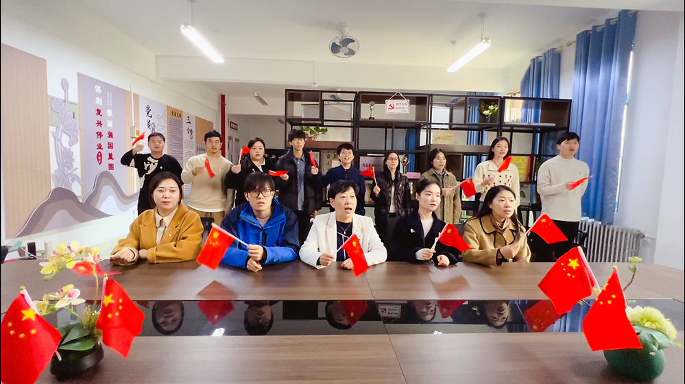 会上,党总支书记、院长王芳为全体教师解读了歌曲《我和我的祖国》的创作背景和演唱技巧。随后,每一位教师党员手拿一支小国旗伴随音乐齐唱,声情并茂,慷概激昂。在抒情的歌曲曲调中,全体教师用歌声尽情抒发热爱党、热爱祖国的情怀,唱出了优美动人的旋律与朴实真挚的感情。