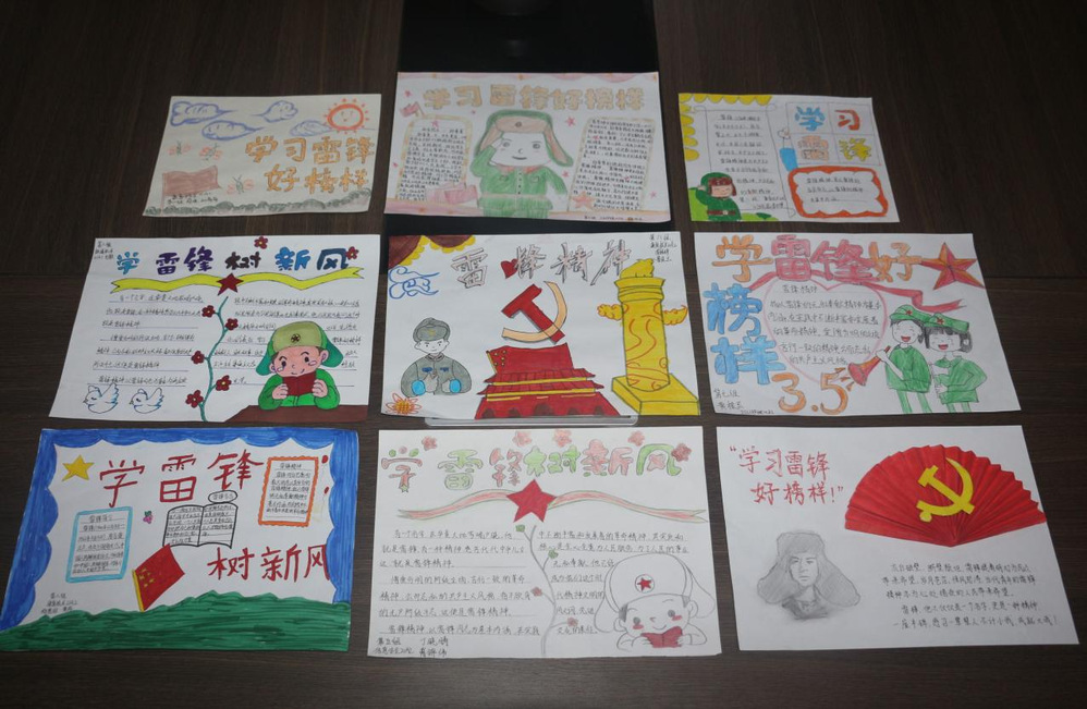 同学们广泛参与,以手抄报、手工、书法、剪纸等方式制作自己的作品。参赛作品外观精美,创意独特,每个作品都表达着同学们对英雄雷锋的崇敬。