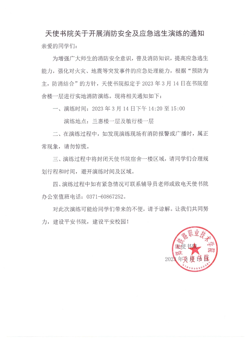 天使书院关于开展消防安全及应急逃生演练的通知