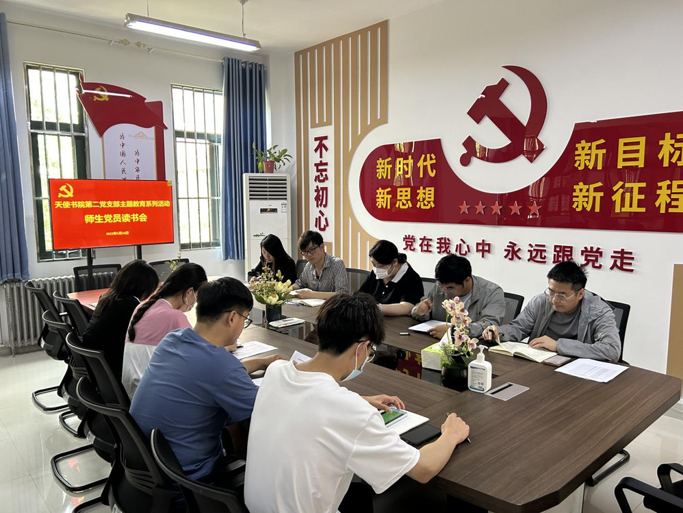 为进一步深刻领会习近平新时代中国特色社会主义思想的丰富内涵与核心要义,将学懂弄通习近平新时代中国特色社会主义思想作为政治责任、精神追求和自觉习惯,5月16日上午,天使书院第二党支部在书院二楼党团活动室举行师生党员读书分享会,天使书院第二党支部书记王小珂,宣传委员马鹏飞,组织委员何峰,支部全体教师党员以及学生党员代表参加。