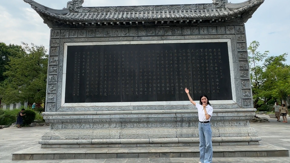 站在范仲淹的雕像旁,育人导师燕童飞老师向大家介绍花洲书院的创建历史及《岳阳楼记》的诞生背景,她说:“一千多年前,范仲淹正是端坐于花洲书院的春风堂,凭着一封手书与《洞庭秋晚图》,挥笔写下了《岳阳楼记》。而今,作为迈向新征程的时代新人,我们要继承并发扬范仲淹忧国忧民的家国情怀,从“忧乐”精神中汲取养料,以文化自信自强为民族复兴注入强大精神力量。”