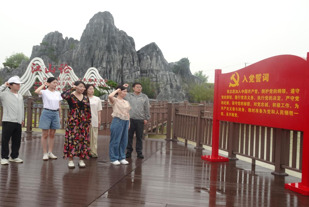在“江山论”红色广场前,书院党总支副书记、副院长王翡翡围绕习近平总书记考察调研邹庄村时关于“人民就是江山,江山就是人民”的重要论述,为分队师生上了一堂内容丰富、思想深刻的主题教育专题党课,并带领大家重温入党誓词,铿锵有力的声音在广场上空回响,充分展现了分队党员师生的责任和担当。