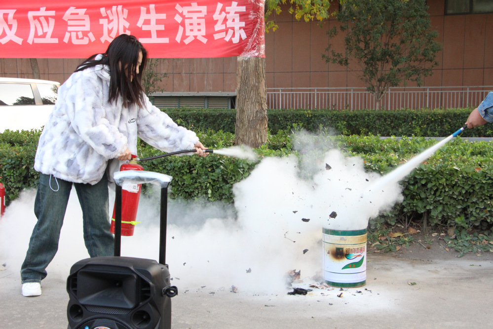 师生集合完毕,学校保卫处消防安全培训教员首先就学校的消防安全职责、常见的火灾隐患、火灾防范措施、初期火灾扑救方法及灭火器具使用、火灾现场逃生通道、应急避险等内容进行讲解。通过实践演练、现场授课、现场体验相结合的形式,对在校师生如何正确使用灭火器进行详细介绍和演示指导,全面分析校园存在的各类安全隐患,宣传普及消防安全知识,并对如何做好初期火灾的扑救、自身的防护、火场逃生自救、组织人员疏散等知识进行了详细的讲解,增强师生们的消防安全意识,确保遇到突发情况时能够保障自身安全。
