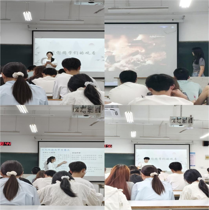 主讲人以多元视角深入解构端午文化基因。通过详实史料与生动案例,系统梳理了先秦龙图腾祭祀、屈原投江传说、伍子胥与曹娥故事等多元起源,展现了端午节俗的深厚历史底蕴与复合型文化内涵。讲座结合PPT中的动态时间轴及精美图片,对龙舟竞渡、食粽挂艾等核心习俗进行物象解析,揭示其从古代祭祀驱邪到现代竞技娱乐、团队精神的演变逻辑,以及民俗信仰与科学内涵的交融。互动环节采用“知识擂台-感悟分享”双轨模式,通过现场答题机制激发同学们的学习热情,并邀请学子围绕“屈原精神的时代转化”等议题展开分享,展现青年对传统文化的创新性传承。讲座最后呼吁,端午节作为中国传统节日的重要载体,承载着家庭团聚、爱国主义精神等深厚文化底蕴,应得到更好的传承与发扬,让古老节日在新时代焕发新的生机。