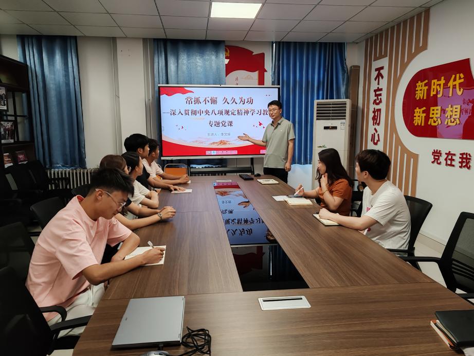会上,支部书记李文辉作《常抓不懈 久久为功——深入贯彻中央八项规定精神学习教育》专题党课。同时,他结合具体案例,带领支部同志深入学习领会中央八项规定精神,并对持续深入推进作风建设、提升支部凝聚力战斗力提出具体要求和安排。