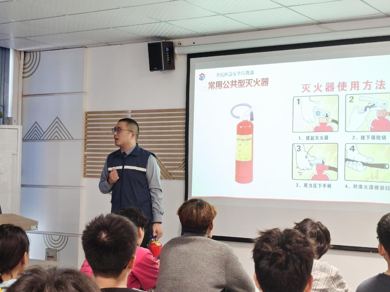 本次宣讲活动以“理论讲解、案例剖析、实操演练”为主导原则,特邀全民应急安全宣教部李安然教员担任主讲人。讲座伊始,李教员以“校园火灾离我们有多近”为切入点,通过播放高校宿舍火灾事故纪实视频,直观呈现了违规使用大功率电器、私拉乱接电线、易燃物品堆积等行为引发火灾的全过程。针对师生日常学习生活中的消防技能盲区,李教员现场演示灭火器“提、拔、握、压”四步操作法后,邀请师生代表轮流上台实操,从握姿调整到喷射角度,逐一纠正不规范动作。