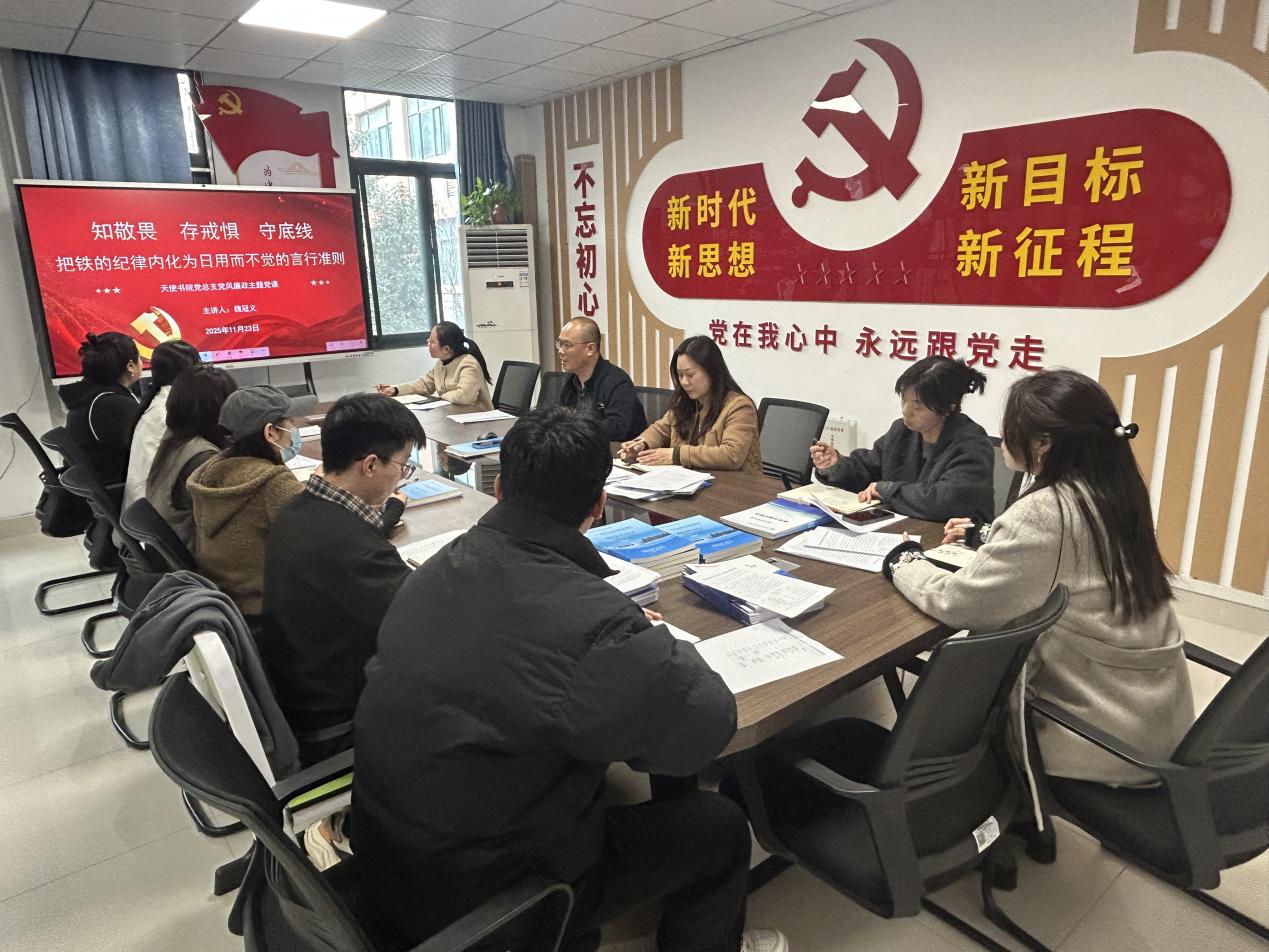 11月26日,天使书院召开党风廉政建设警示教育暨集体廉政谈话会,党总支书记魏冠义主持,班子成员、全体专职辅导员参与。