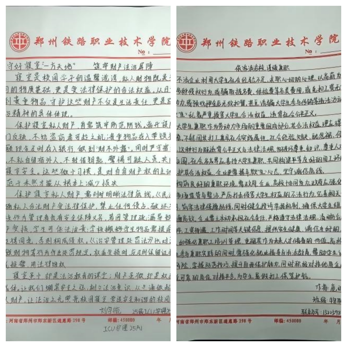 活动以“精准破题+多元赋能”为核心,精心设置作品征集、社区推荐、综合评选三大关键环节,创新设置主题征文、普法随手拍、展板打卡等多维参与形式,最大限度激发学生参与热情。同学们立足校园生活实景深挖素材,聚焦隐私安全防护、兼职诈骗规避、二手市场交易规范、网购维权技巧等高频权益痛点,创作出一批兼具思想深度与实践价值的优质作品。