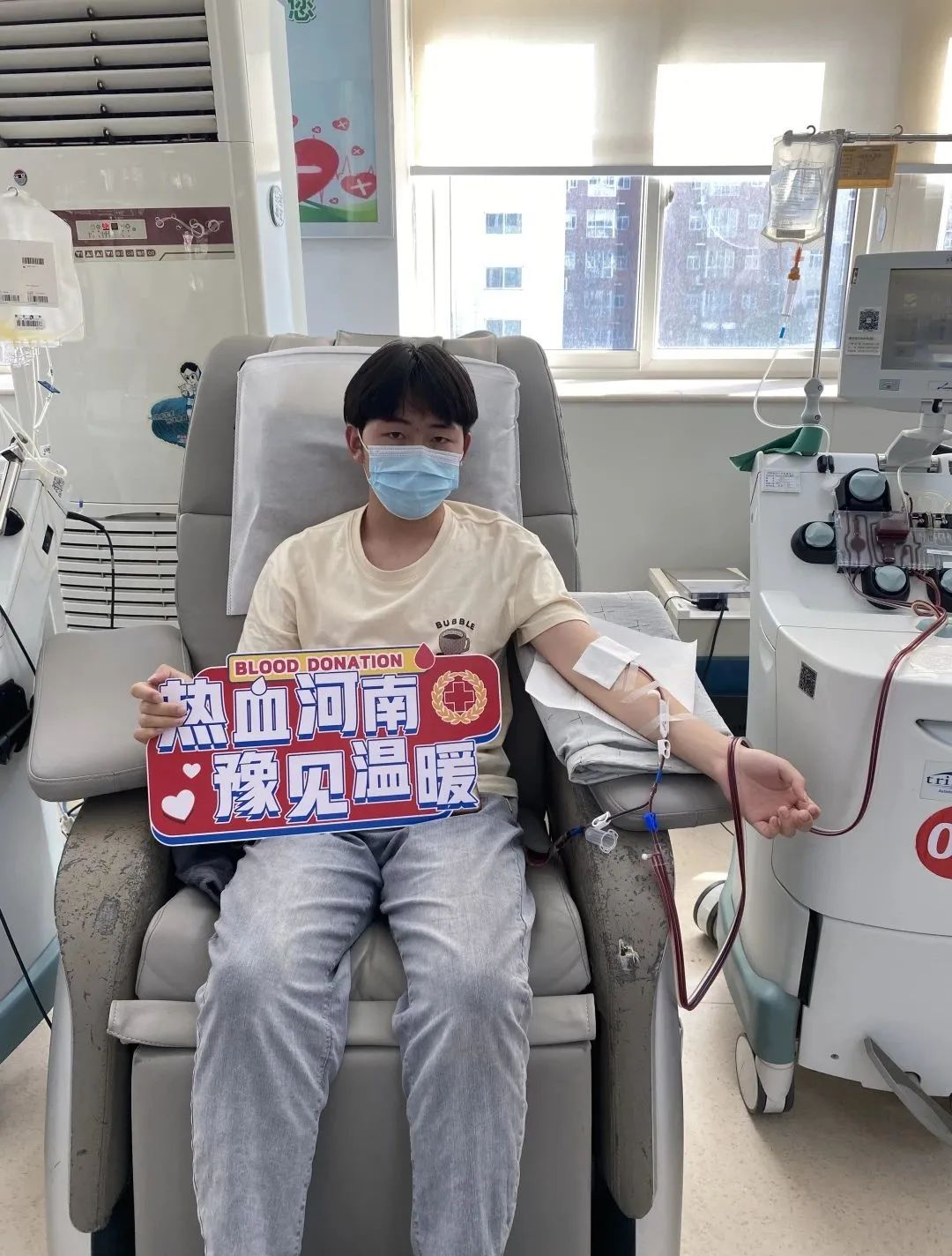 献血后的同学表示:作为大学生应该走在无偿献血的前列,我们不但要传承好无私奉献、敢为人先的精神,更要在今后的生活和工作中都能以一个优秀公民的标准来要求自己,为全面建设社会主义现代化强国贡献自己的青春力量!