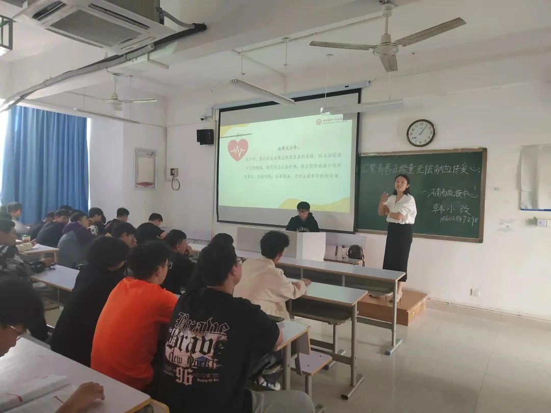 校红十字会学生服务队首先制定无偿献血计划,先于10月10日邀请省血液中心的韩小改老师到校做“汇聚青春正能量,无偿献血传爱心”主题宣讲,韩老师讲到,虽然医学科研日新月异,创造了无数的奇迹,然而,至今却没有研制出一种能完全代替人体血液全部功能的人造血液供给临床医疗、急救和战备使用。因此,血——这种被人们称为“生命之河”的宝贵物质,目前还只能从健康适龄的人体中获取。同时,献血是安全的,之所以提倡无偿献血,是因为自愿无偿献血不受利益驱动,鲜血的合格率高,质量高,有利于献血者和受血者的健康安全,是安全输血的保障。