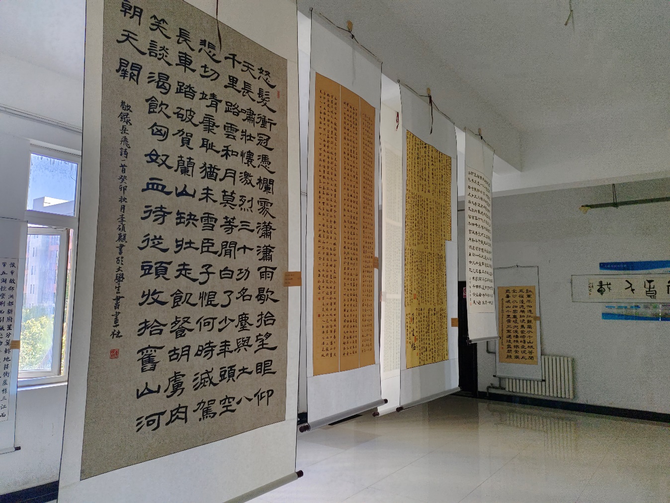 本次书画展是我社自疫情以来第一次大型活动,共展出作品120余幅,作品全部来自我社指导老师、退休办老师及社员,其中包括了书法、国画、素描、篆刻等作品;书法作品有行、楷、篆、隶书;国画作品有山水、花鸟、人物、工笔等,作品主题鲜明,内容丰富,很好的展示了社团学员自开学以来的努力成果,也更是对社团学员学习的一个检验。在校期间,学生一直处于校园进行学习活动,而作为新青年的大学生们要做德智体美劳全面发展的人才,适当的校园文化活动有助于学生们综合发展,培养正确三观,丰富校园生活。校园本就是文化知识与艺术创想的摇篮,依托校园文化发展的大学生,应多多参加校园活动,培养创新、审美精神。