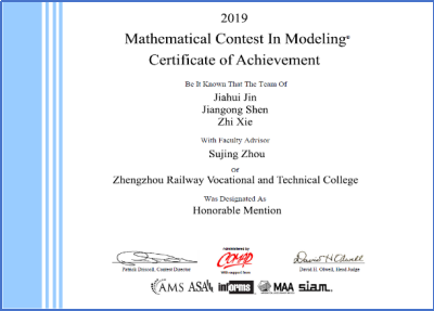 2019年,有四个队主动要求参加了国际大学生数学建模竞赛,取得了一个H奖,beat365首次参加就实现了一个飞跃。从参加比赛以来,共获国际大学生数学建模竞赛H奖2项、S奖5项。
