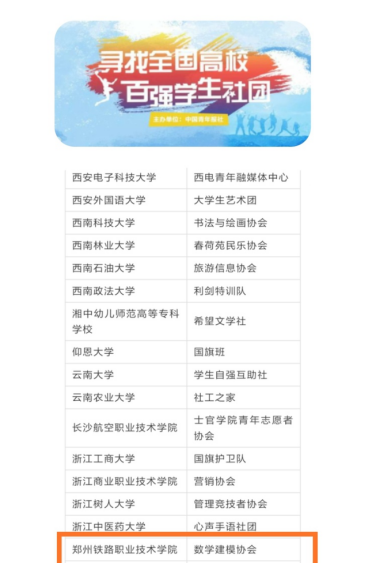 竞赛佳讯频传,社团荣誉也纷至沓来,在2011-2020全国大学生数学建模竞赛专科组获奖院校排名中,位列全国第八、河南省第一。
