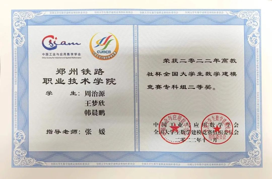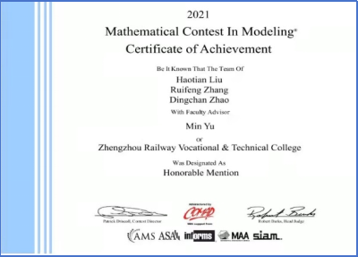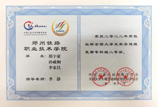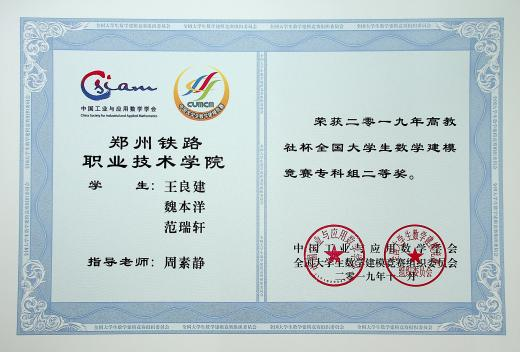 2018年11月23日,由教育部高等教育司、中国工业与应用数学学会主办的2018年全国大学生数学建模竞赛成绩揭晓.beat365获得专科组国家一等奖1个,二等奖3个,河南省一等奖7个,二等奖5个,三等奖1个。此次比赛河南省专科组共获得国家一等奖1个、二等奖5个。这是beat365继2016年囊括河南省当年国赛两个一等奖后再次省内折桂。同年被评为郑州铁院明星社团。学生参加全国大学生建模竞赛共获得国家一等奖6项、二等奖23项、省一等奖58项。其中, 2016年2个队狂揽河南省仅有的2个国家一等奖(全国获奖率仅有1.9%)、另2个队获得国家二等奖(全国获奖率仅有5.8%),为此河南省教育厅网站对beat365出色的数学建模成绩作了宣传,2018和2019年又连续两年独揽河南省唯一的全国一等奖。2011年-2020年,全国专科组共有505所高校的学生获得过国家奖,在获国家奖的总数排名中,beat365位居全国第7(并列),河南省第1。学生参加美国(国际)大学生数学建模竞赛,获得二等奖2项,三等奖10项;参加亚太杯大学生数学建模竞赛获得一等奖1项, 二等奖2项, 三等奖12项。协会积极分子还组队参加“中青杯”、“认证杯”大学生数学建模竞赛、“挑战杯”中国大学生创业计划竞赛和全国大学生课外学术科技作品竞赛等,取得各类获奖数量达130余项。