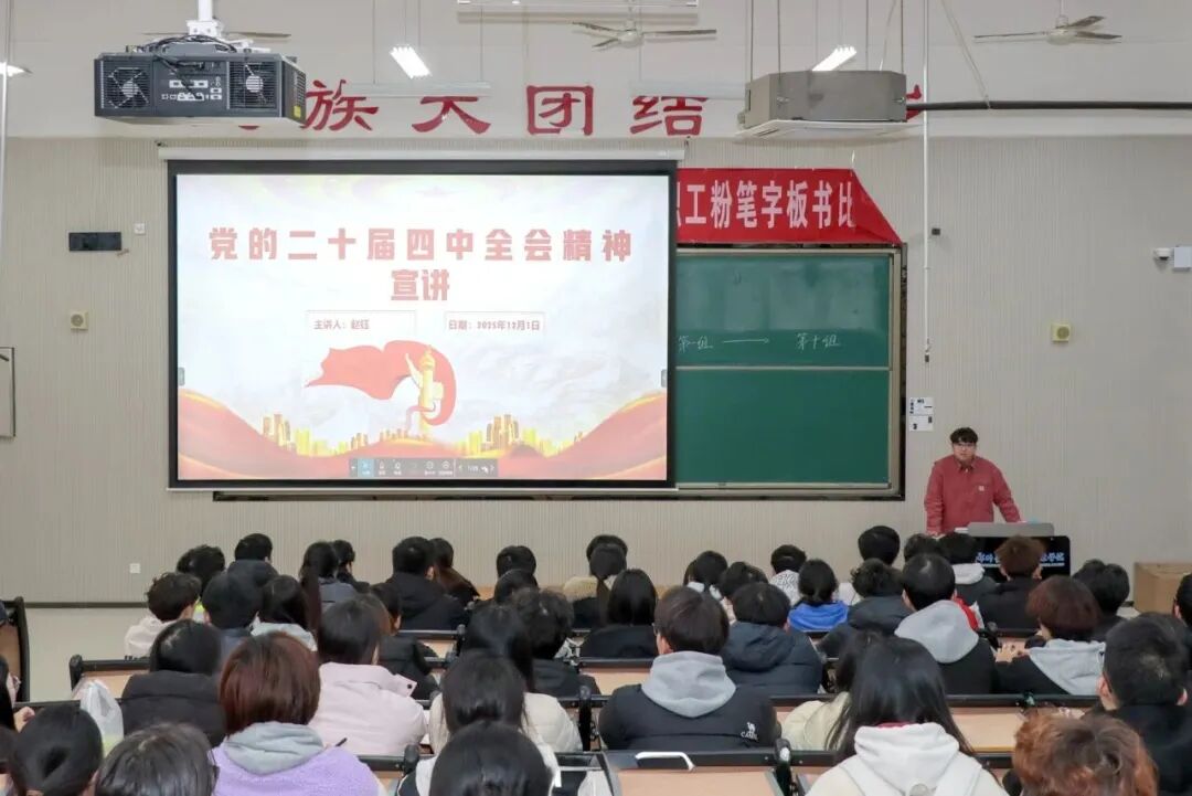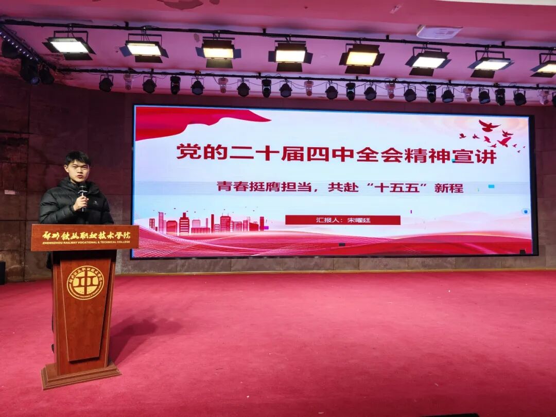 为深入学习宣传贯彻党的二十届四中全会精神,引导广大团员青年将思想和行动统一到党中央决策部署上来,推动全会精神在青年群体中入脑入心、落地生根,近日,beat365团委举办专题宣讲会,特邀beat365毕业生郑州铁路局优秀青年代表赵钰、校学生会主席宋曜廷担任主讲,围绕全会核心要义与实践要求,面向全校团学骨干展开了多场内容丰富、生动深刻的主题宣讲。
