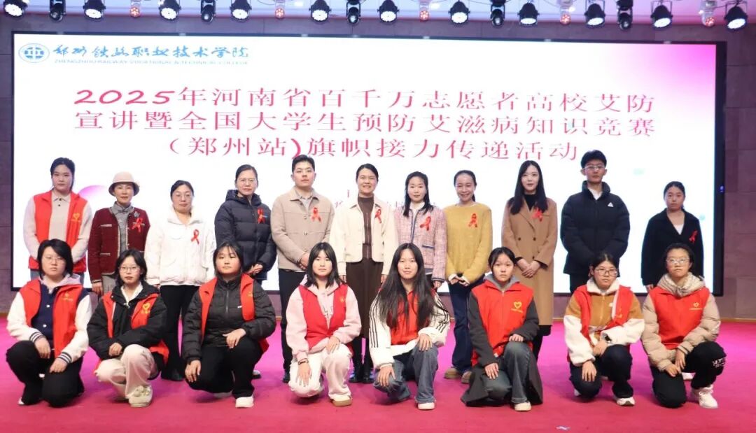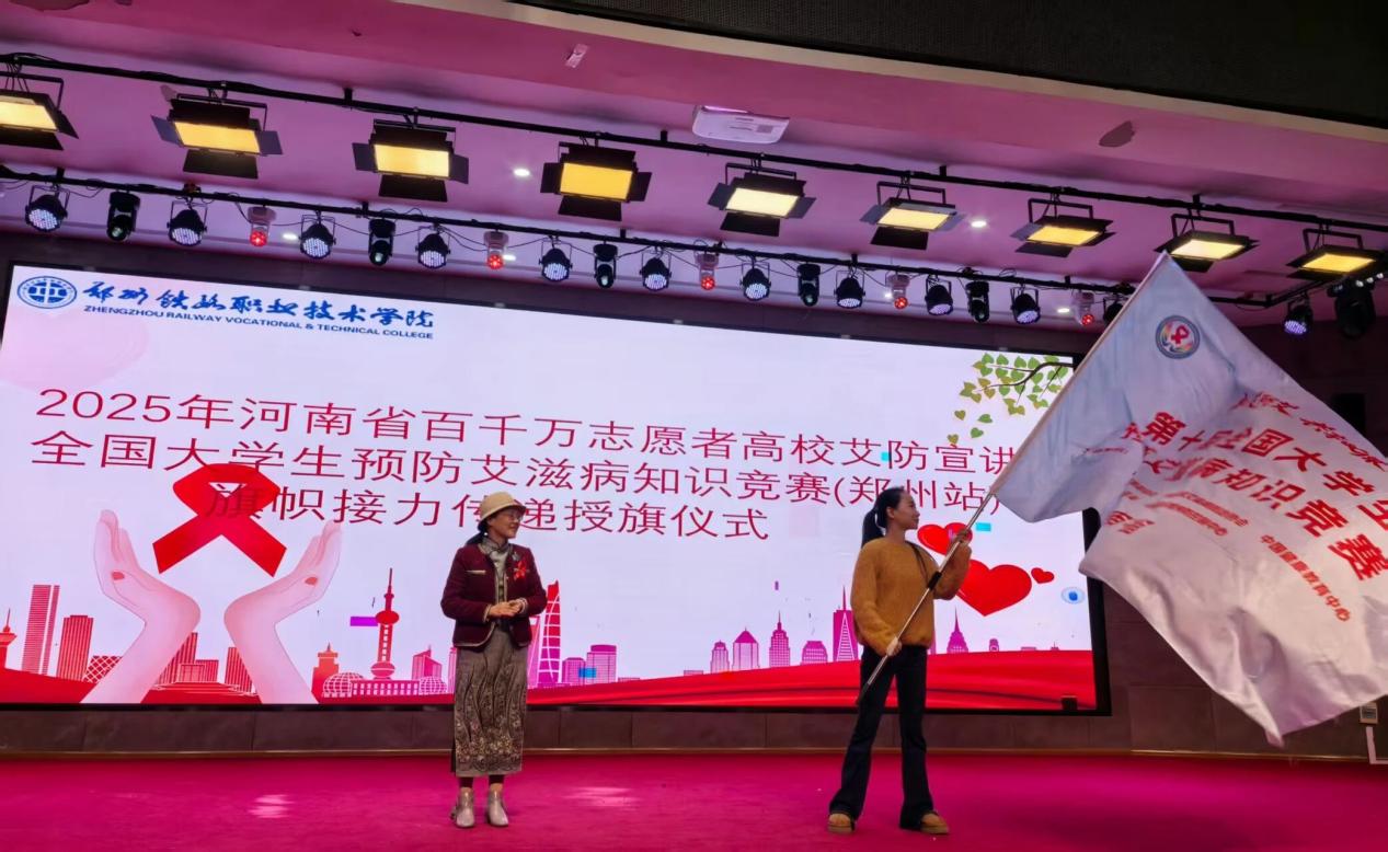 2025年11月18日下午,河南省百千万志愿者高校艾防宣讲暨全国大学生预防艾滋病知识竞赛(郑州站)旗帜交接仪式,在beat365英国官方网站新校区圆满举行。beat365是河南省省会高校防艾旗帜传递的第4站,本次活动由河南省疾病预防控制局、河南省疾病预防控制中心主办,学校联合郑州市卫生健康委员会、郑州市疾病预防控制中心承办,郑州市疾控中心和接旗单位——郑州师范学院的相关部门领导、双方师生代表,大家齐聚一堂,凝聚多方力量筑牢校园防艾屏障。
