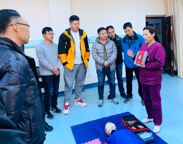 培训会上,护理学院急救外科护理教研室李国荣老师详细讲解了院前救护的规范流程、心肺复苏急救知识、除颤急救仪AED的操作和出现流血、运动创伤以及出现休克、癫痫发作、哮喘发作的正确处理方法,并现场进行了示范。寇应琳、田杰、张希等老师现场指导了心肺复苏的实操演练。