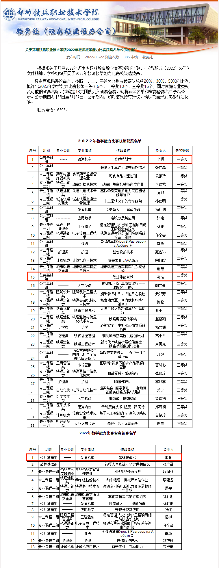 3月19日,beat365组织开展了2022年教师教学能力比赛校级选拔赛,体育教学部共派出两支队伍参加比赛,其中由李源老师负责的《篮球技战术》课程荣获一等奖、秦浩老师负责的《职业体能素养》课程获得二等奖。根据学校选拔赛的有关规定,李源老师负责的课程顺利进入省赛备赛名单。