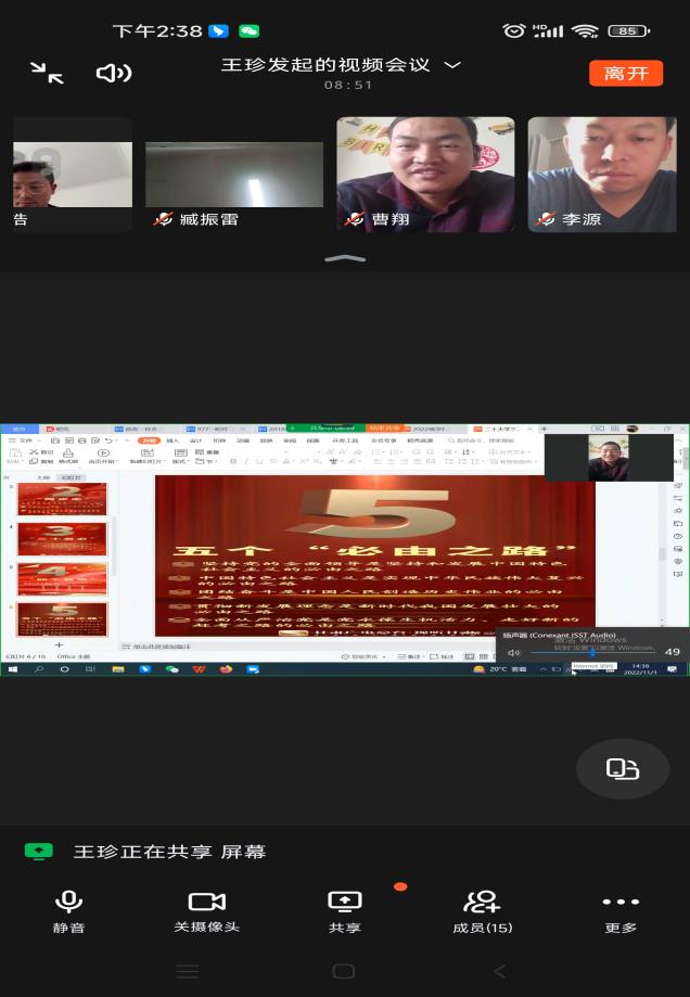 王珍根据体育教学部直属党支部的工作实际,就进一步深入学习宣传贯彻党的二十大精神提出要求:一是各位党员要把学习贯彻习近平总书记重要讲话精神和党的二十大报告精神作为当前和今后一个时期的重大政治任务,自觉把思想统一到党的二十大精神上来,全面贯彻党的教育方针,落实立德树人根本任务,自信自强、守正创新,踔厉奋发、勇毅前行,做好党支部各项工作。二是要加强组织领导,研究制定学习宣传贯彻党的二十大精神方案,要认真学习领会党的理论和路线方针政策,更加自觉地学习党章、遵守党章、贯彻党章、维护党章,在思想上政治上行动上同党中央保持高度一致。三是要持续抓好疫情防控,发挥党员模范带头作用,带领广大师生坚决克服麻痹思想,严格落实当前疫情防控各项措施,从严从紧落实疫情防控工作要求。