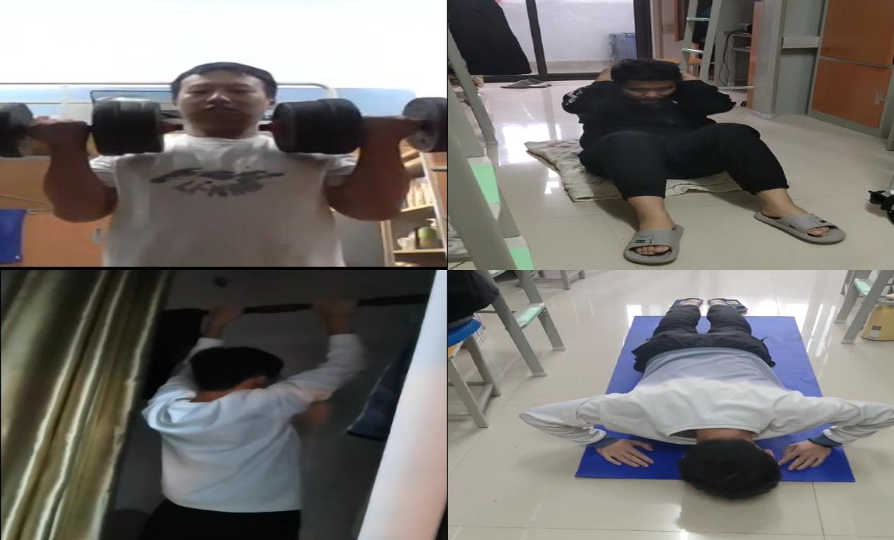 仰卧起坐、平板支撑、俯卧撑、引体向上等活动在各个寝室如火如荼地开展,同学们参与热情高涨,纷纷通过拍摄视频的方式,将自己的作品发送给任课教师。后期,体育教学部将组成评审团对大家的视频进行评选,表现优异的同学会由楼长颁发奖励。此外,同学们还表达了对学校、对老师及悉心照料自己的志愿者们深深的谢意。