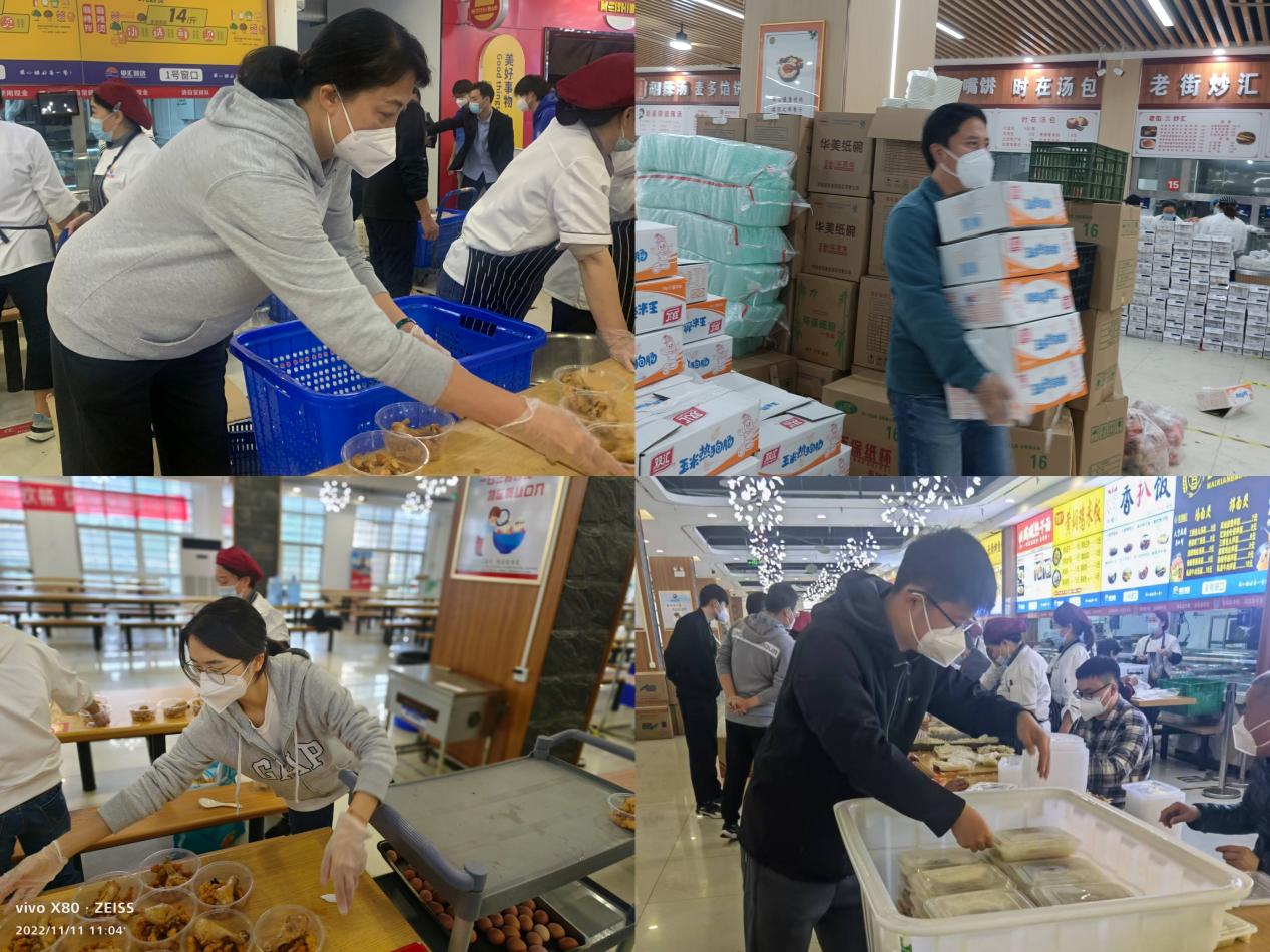自10月中下旬以来,体育教学部五名教师被封控在学校,在此期间,他们立刻投入到学校疫情防控工作一线,成为了学校防控工作的中坚力量。在学校静态管理时,他们负责起师生送餐工作,每天早中晚为师生分发餐食。一份份热腾腾的饭菜经过消毒、打包、装箱后被送至师生居住地,整个过程紧张、有序。他们在校园中忙碌的身影深深的刻在了每一个铁院师生的脑海。一餐一食,一点一滴,汇聚了教师对每一名学生无微不至的关怀,彰显了铁院精神。饭菜虽小,情谊深厚;师生同心,共克时艰。他们的努力终将写进铁院疫情防控的战歌,成为铁院人踔厉奋发、齐心圆梦的美好见证。