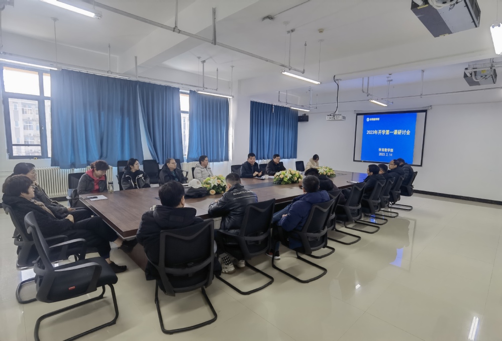 2月14日上午体育教学部在科创楼414召开了“开学第一课”研讨会,会议由王珍主任主持,部门全体教师参加。