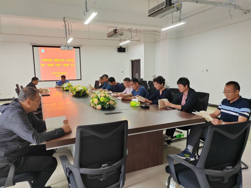 为深入开展学习贯彻习近平新时代中国特色社会主义思想主题教育,认真传达学习习近平总书记重要讲话精神,坚持不懈用习近平新时代中国特色社会主义思想凝心聚魂,5月24日下午,体育教学部直属党支部在科创楼414开展了主题教育“读原著、学原文、悟原理”活动。