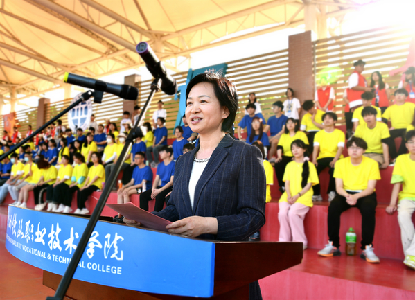 校长马玉霞致闭幕词。她代表学校向取得优异成绩的参赛单位、团体和个人表示祝贺,向为筹备运动会付出辛勤劳动的组委会全体成员、全体运动员、广大师生表示感谢。马玉霞表示,短短两天的赛事组织严密、进展顺利、成绩显著,展示了学校体育竞技水平和体育教学成果,展现了莘莘学子的青春风采和教职工健康向上的精神风貌。马玉霞指出,学校始终坚持把体育放在突出位置,持续开展群众性体育运动、持续深化体教融合,充分发挥“以体育心、以体增智,以体育人”的作用,帮助同学们在体育运动中享受乐趣、增强体质、健全人格、锤炼意志,培养德智体美劳全面发展的高素质技术技能人才。希望大家将“更高、更快、更强”的体育精神转化为勤奋学习、爱岗敬业、奋勇争先的强大动力,凝聚成攻坚克难、促进发展、拼搏出彩的强大合力,为进一步推动学校事业高质量发展作出新的更大贡献。