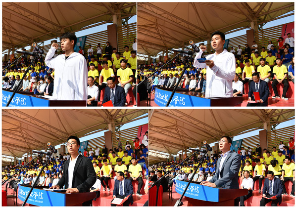 周端武同学和赵山老师分别代表运动员和裁判员宣誓,本届田径运动会总裁判长郭昱漾宣布大会纪律,运动会纪律检查组组长刘富星宣布了体育道德风尚奖评比办法。