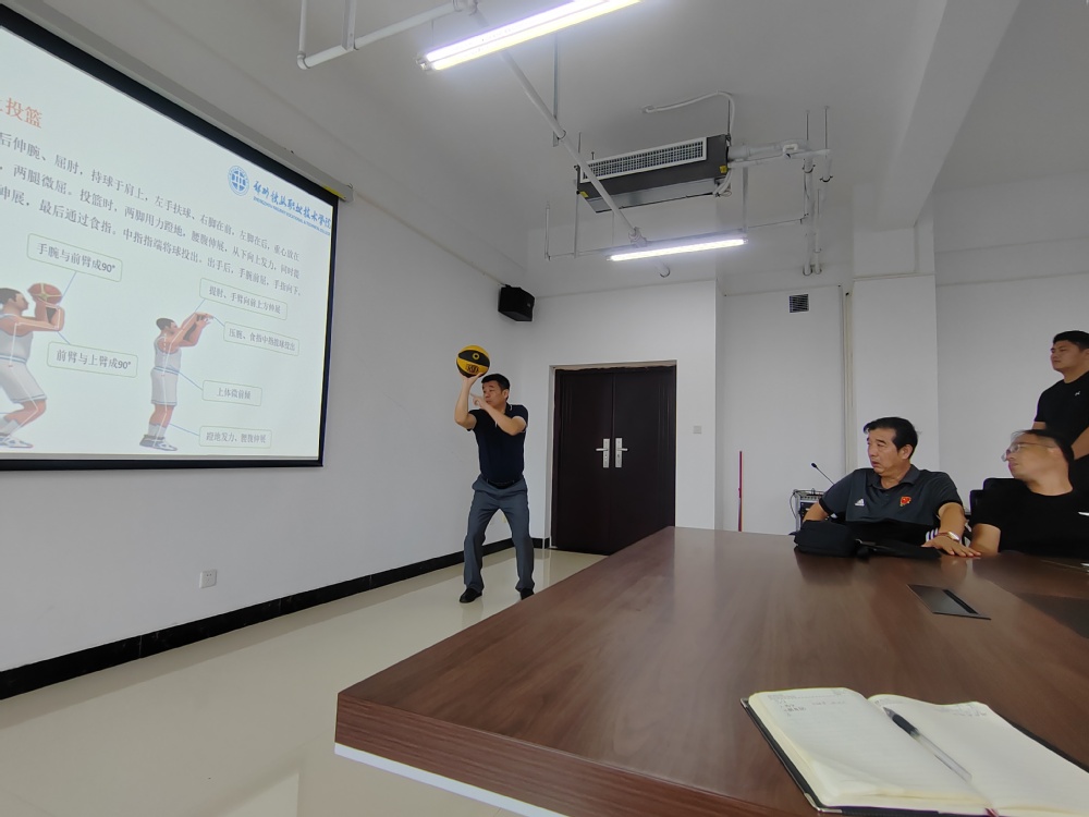 展示环节,靳乐乐老师《原地单手肩上投篮》为教学主题结合学生学情设计教学流程,在动作讲解、示范演示、课堂互动等环节充分展现个人教学思路,呈现了规范的技术指导,同时也暴露了“动作展示不够规范”“教学节奏把控不足”等待改进问题。