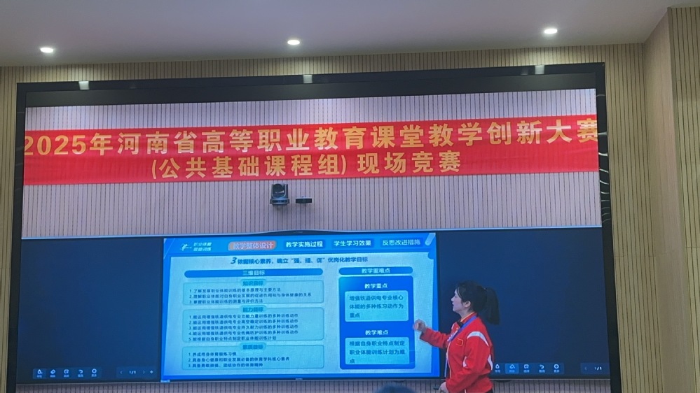 近日,河南省教育厅办公室发布《关于2025年河南省高等职业教育课堂教学创新大赛获奖名单的通知》(教办职成〔2026〕19号),经过省级网络初评、现场决赛等多轮激烈角逐,我部赵明明教师表现突出,获得省一等奖。