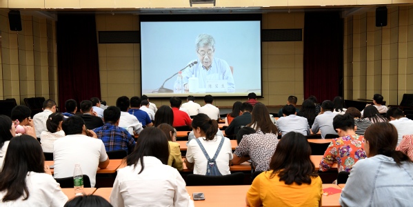 按照教育部的统一安排部署,9月27日下午,校党委在第一报告厅举行中心组扩大会议集中收看教育部党组书记、部长陈宝生导学的“习近平总书记关于教育的重要论述”。校党委中心组全体成员、全体专兼职思政课教师、全体辅导员参加会议。
