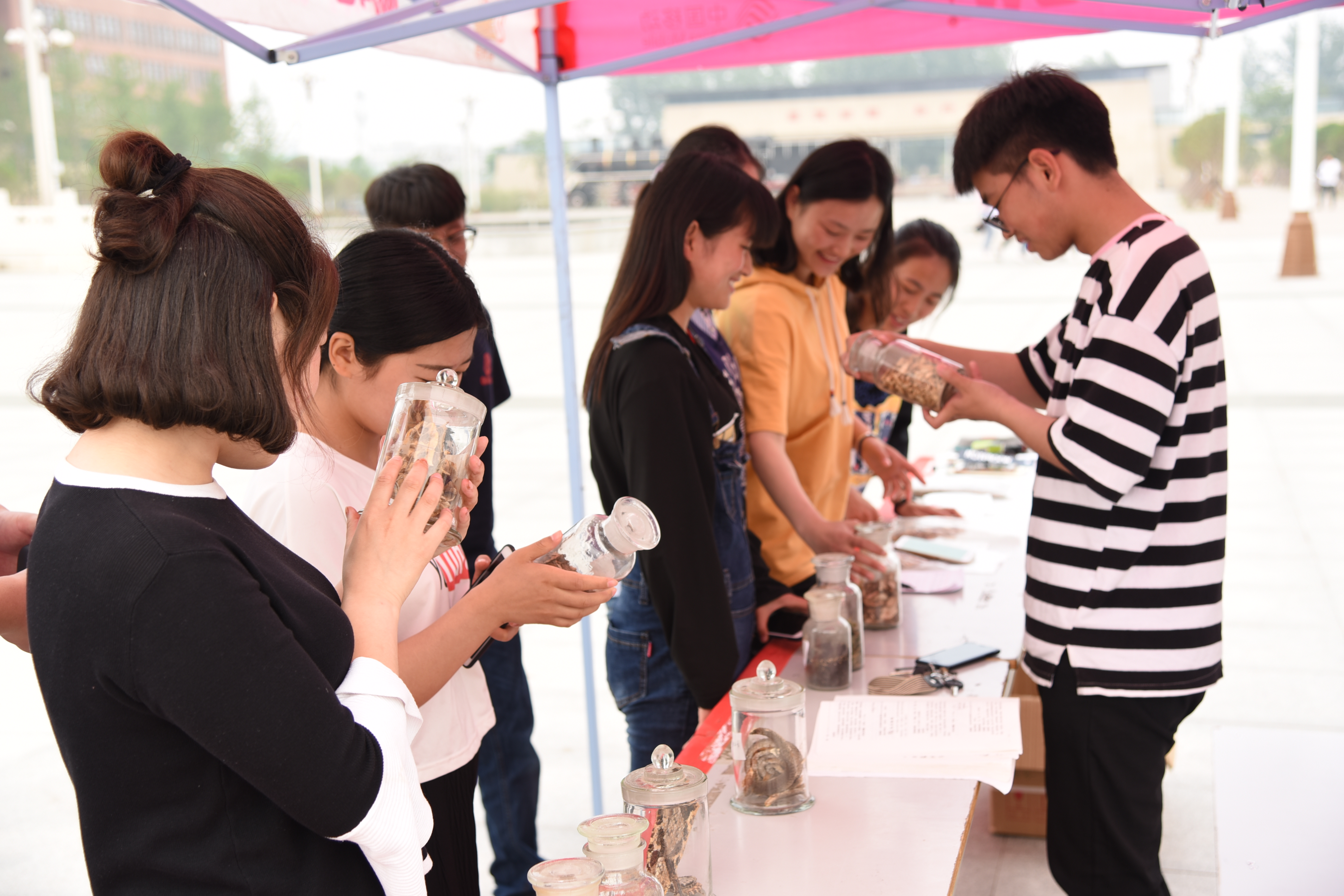 弘扬国之精粹,舞动药之灵魂。让更多同学了解中药材的品类,4月19日下午三点,药学系、国药学社、药膳学社在铁龙广场联合组织了一场中药材鉴定活动。 本次活动以展览的形式开展,每天展出25种药材。期间,许多对药材感兴趣的同学前来参观,大家见到了日常生活中不常见的龟甲、决明子、连翘等中药材,心中很是惊喜。本次活动负责人也不时为大家补充关于中药材的知识,并邀请同学们参加后期举办的中药鉴定大赛。前来鉴赏中药材的同学络绎不绝,使得展览很是热闹。 据悉,本次活动持续五天,将展出125种药材供同学们鉴赏,使更多的同学去深入了解中药的魅力,扩充了他们在中药材方面的知识,提升了药学系及其相关社团在学校的影响力,为beat365对药材有兴趣的同学搭建了一个互相交流与学习的平台。
