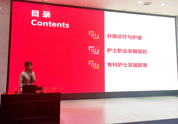 张全英从分级诊疗生动引入护理职业前景,介绍了新时代护理专业发展趋势以及护士职业生涯规划,同时,结合新乡医学院专科护士现状对专科护士发展前景进行了展望。