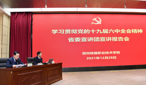 校党委高度重视,提前部署,积极组织师生通过视频直播的形式观看宣讲报告会。广大师生认真学习报告会精神,深入开展研讨交流,大家纷纷表示,要深入学习领会党的十九届六中全会精神,全面系统学,及时跟进学,联系实际学, 汲取百年奋斗力量,立足本职砥砺奋进,切实将学习成效转化为推动学校高质量发展的强大动力,为谱写新时代中原更加出彩的绚丽篇章贡献力量。