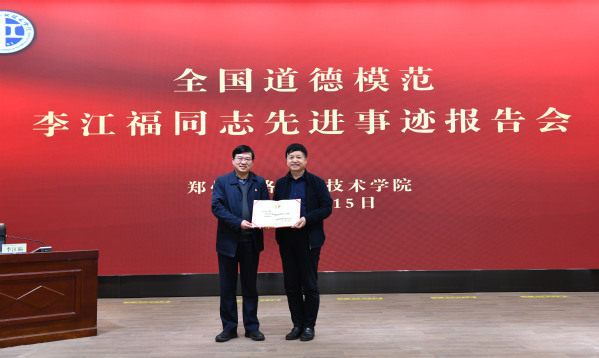 报告会上,徐宏平代表学校为李江福老师颁发了“学校思想政治育人导师”聘书。